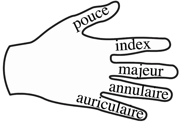 Mathilde compte sur les doigts d’une main : 1 sur le pouce, 2 sur l’index, 3 sur le majeur, 4 sur l’annulaire, 5 sur l’auriculaire, 6 sur l’annulaire, 7 sur le majeur, 8 sur l’index, 9 sur le pouce, 10 sur l’index, ... et ainsi de suite.