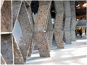 Les architectes paraguayens Solano Benítez et Gloria Cabral ont créé pour l’occasion une œuvre monumentale à partir de leurs recherches sur les formes géométriques, tout en utilisant des matériaux et un savoir-faire propres aux cultures populaires locales. L’artiste cubaine Carmen Herrera, quant à elle, se situe plutôt dans la mouvance de l’abstraction géométrique ; elle a été influencée par le suprématisme et le mouvement De Stilj. Ces œuvres contemporaines dialoguent avec des objets traditionnels décorés de motifs géométriques, invitant le spectateur à une déambulation poétique. Une véritable ode à la géométrie, une exposition à voir !