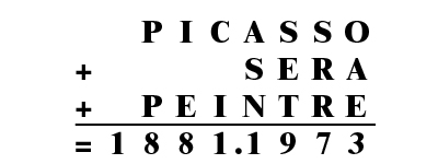 Dans cette série de « cryptarithmes culturels », des artistes célèbres du passé sont honorés, le total de l’addition étant formé par les millésimes de la naissance et de la mort dudit personnage placés côte-à-côte pour former un nombre de 8 chiffres.